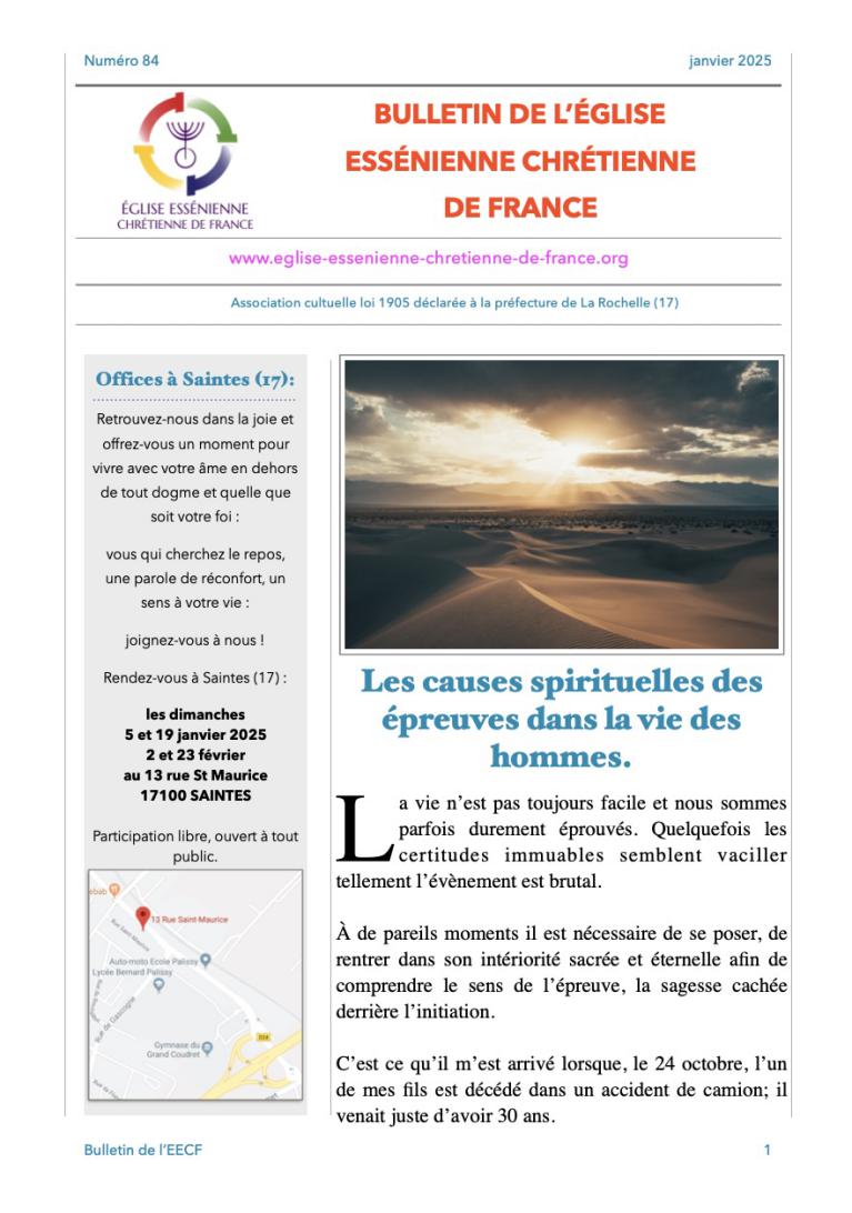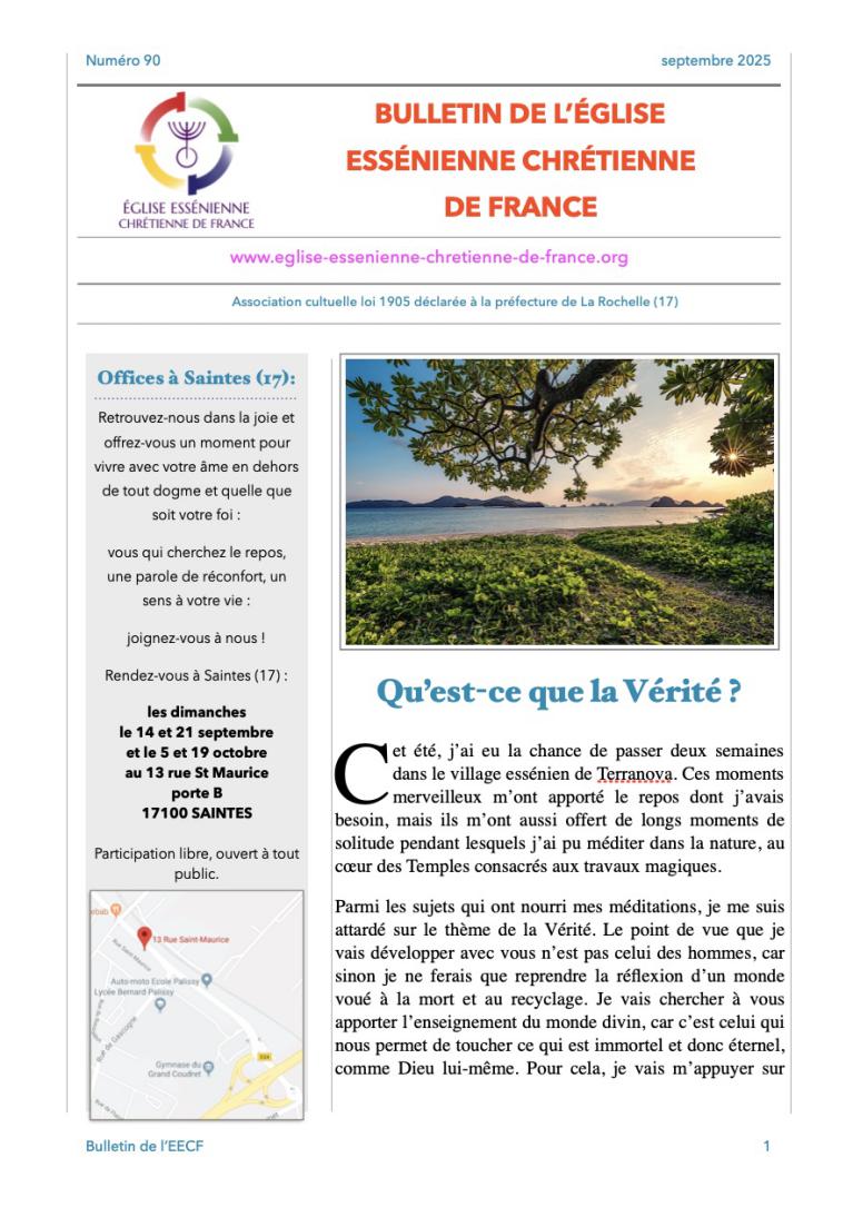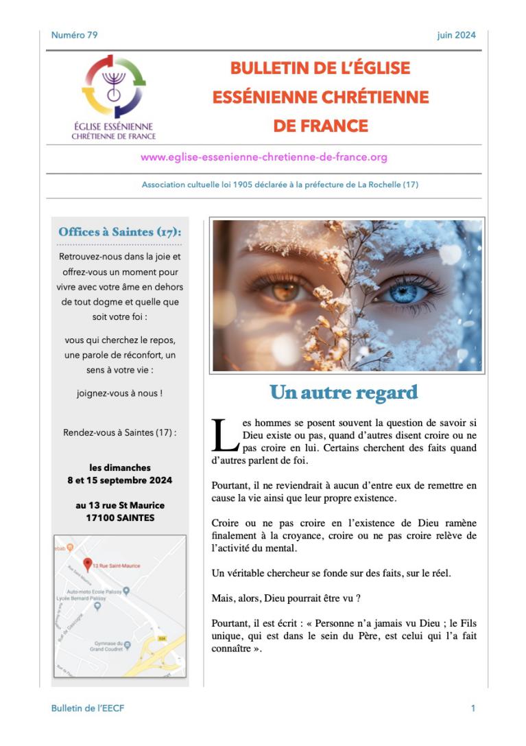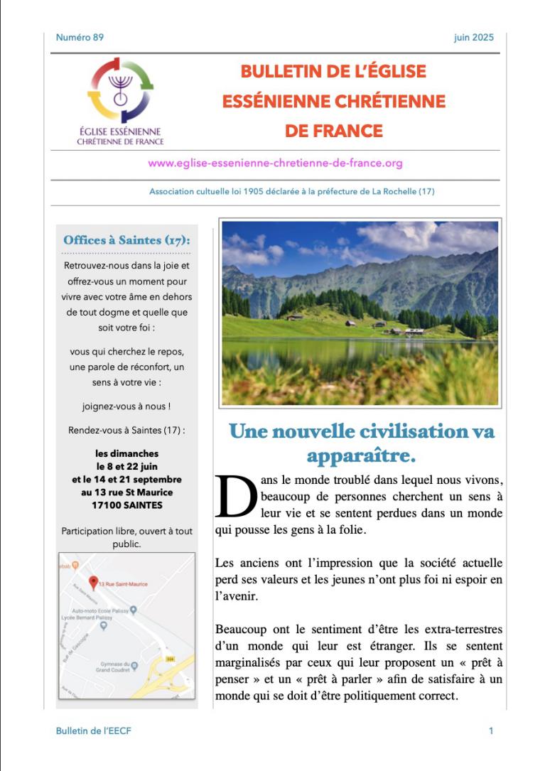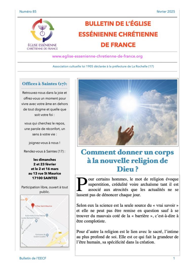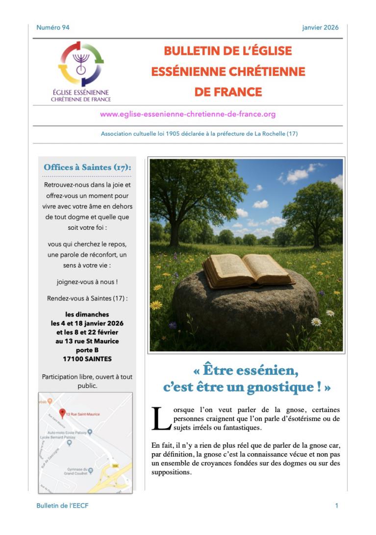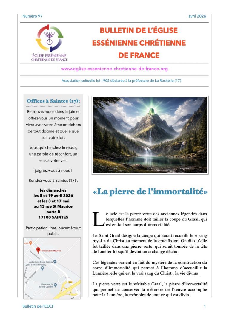 L’Eglise Essénienne Chrétienne de France est un mouvement religieux non sectaire, apolitique, ouvert à tous les êtres, hommes et femmes,