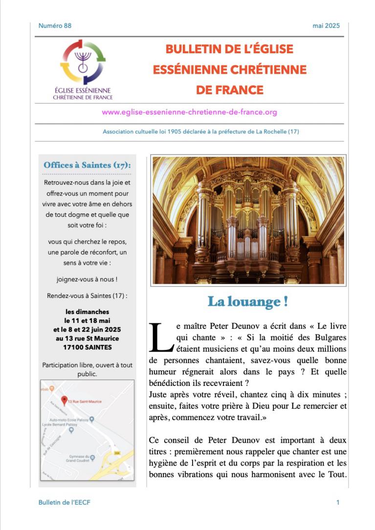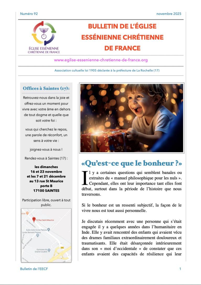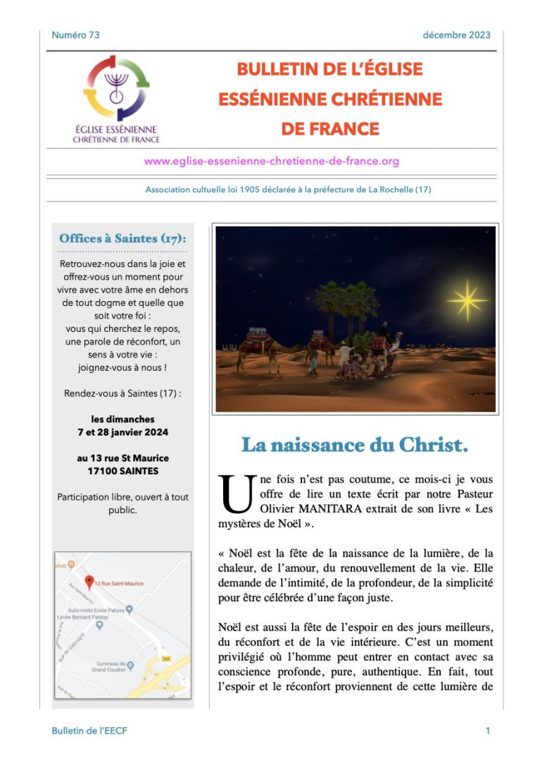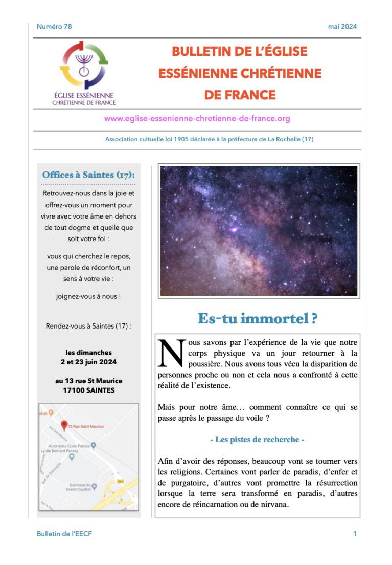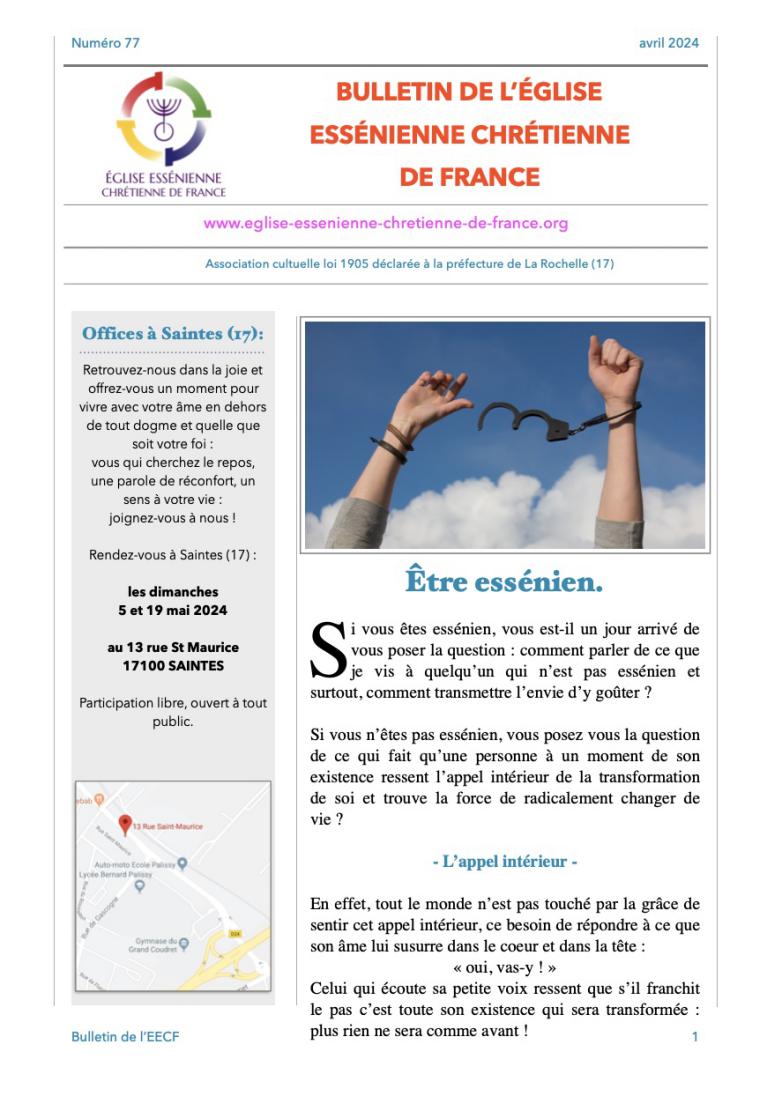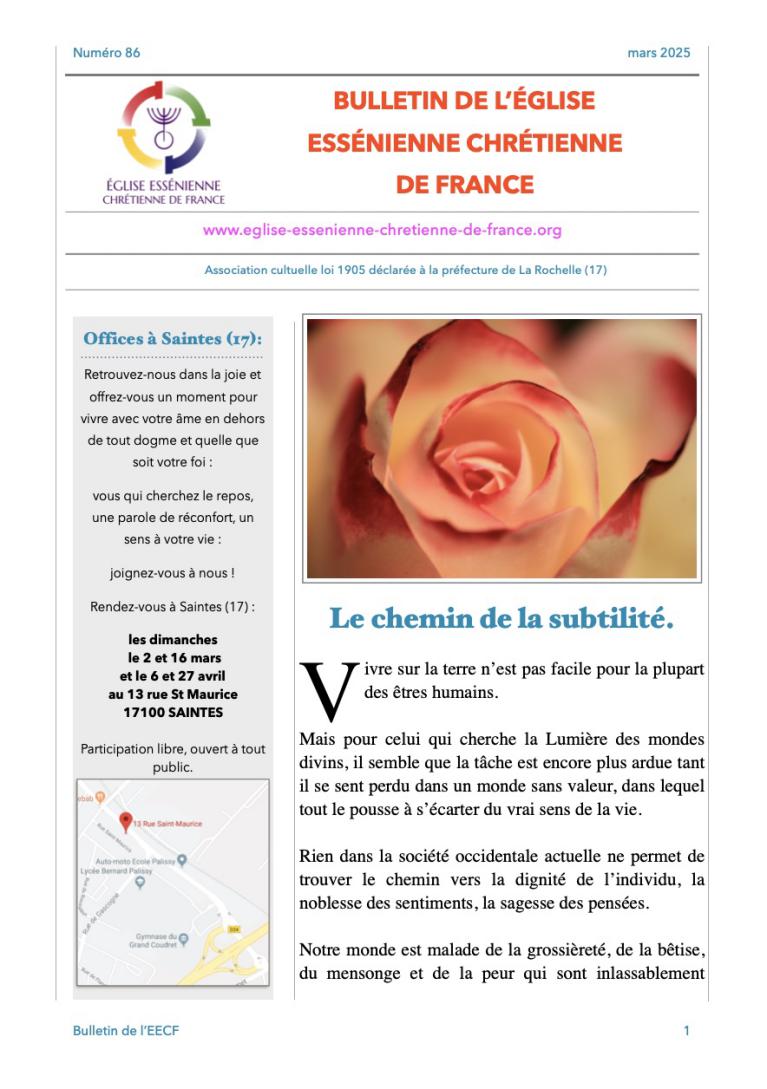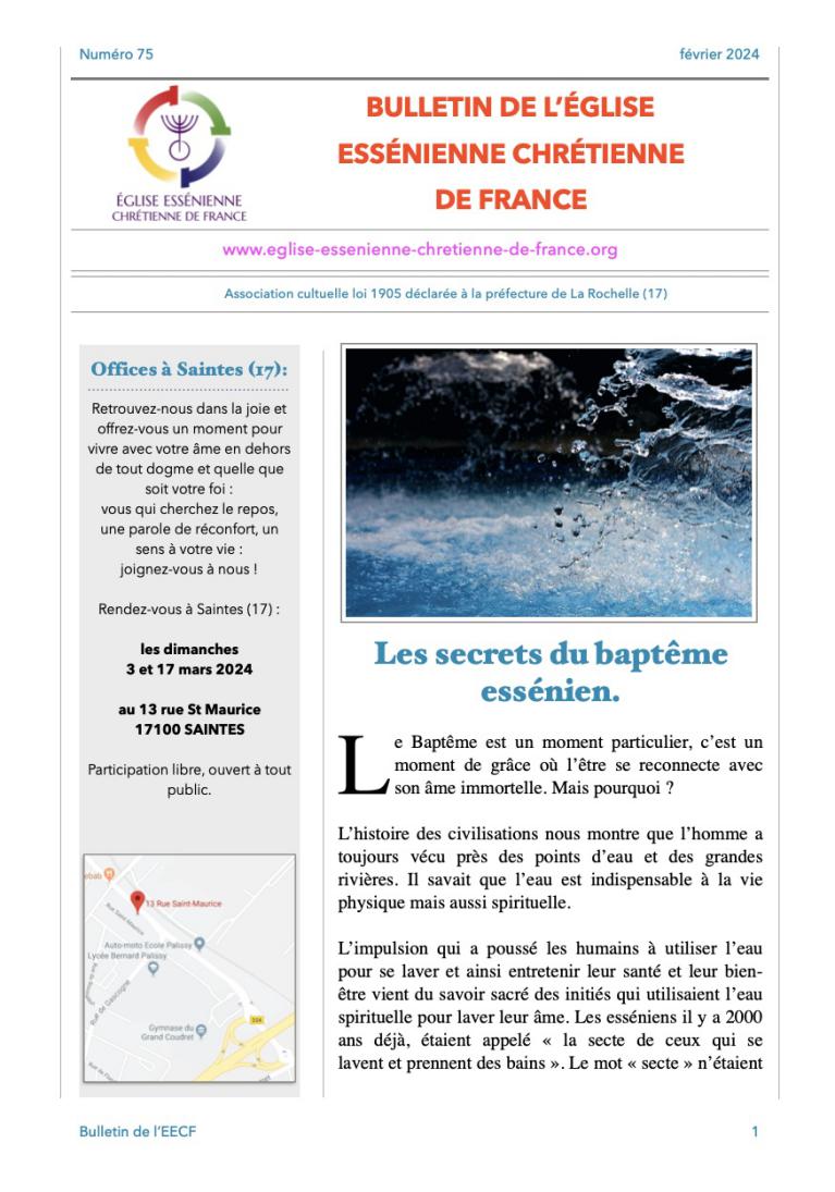 L’Eglise Essénienne Chrétienne de France est un mouvement religieux non sectaire, apolitique, ouvert à tous les êtres, hommes et femmes,